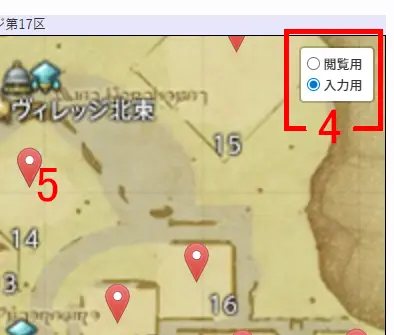 4 マップ表示されたらレイアー選択ボタンで入力用を選択します。入力用マーカーは赤色です。