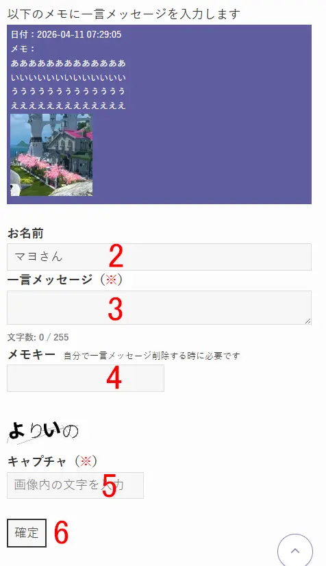 メモの編集・削除および一言メッセージ削除に必要になる時がある、ご自身で設定するパスワードです。