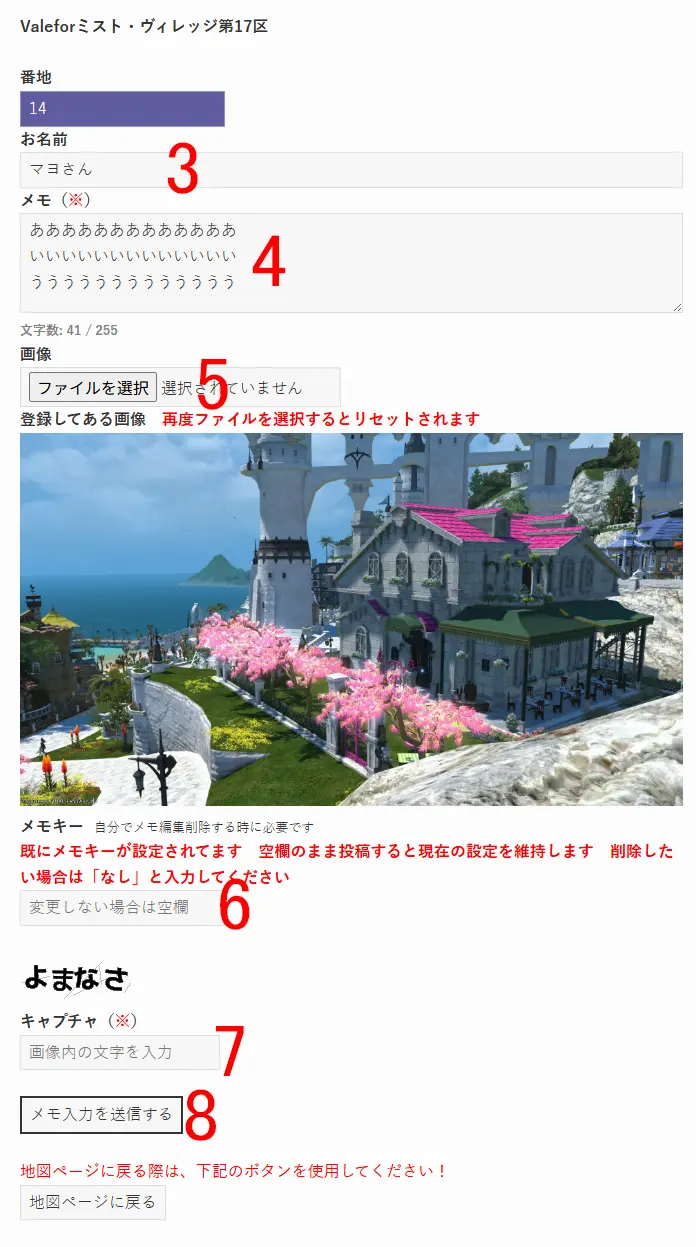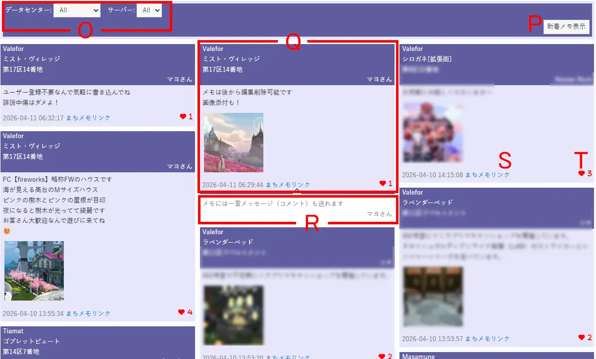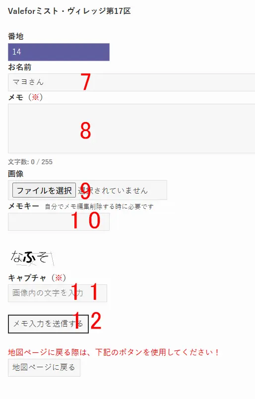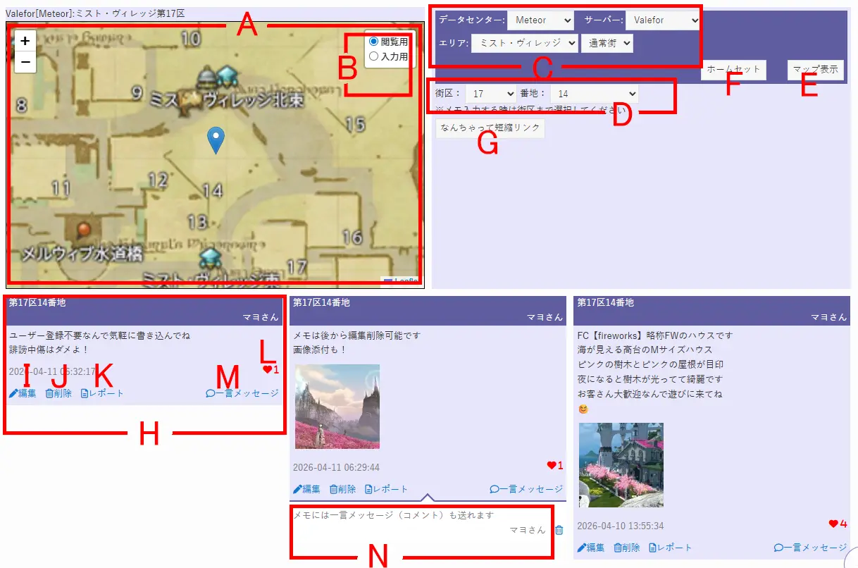 14まちメモはハウジングエリアの地図上のハウスにメモを書くことが出来るWEBサイトです