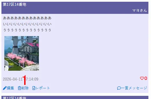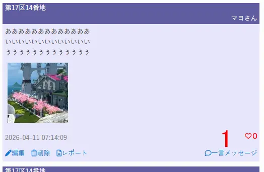 1 メモにある一言メッセージリンクから一言メッセージ(コメント)投稿できます。