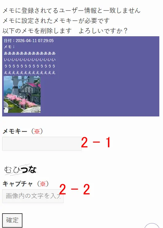 ここで注意。メモを入力したパソコン・スマホと削除しようとする物が同じだったらいいのですが、違う場合または期間が空いた場合は、メモキーが必要になります。